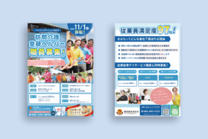 株式会社まはろ様の訪問介護の職員募集を目的としたポスティングチラシを制作させていただきました。 手に取った方が一目で仕事内容や応募条件を理解できるように、見出しや写真の配置を工夫し、安心感のあるデザインに仕上げています。 […]